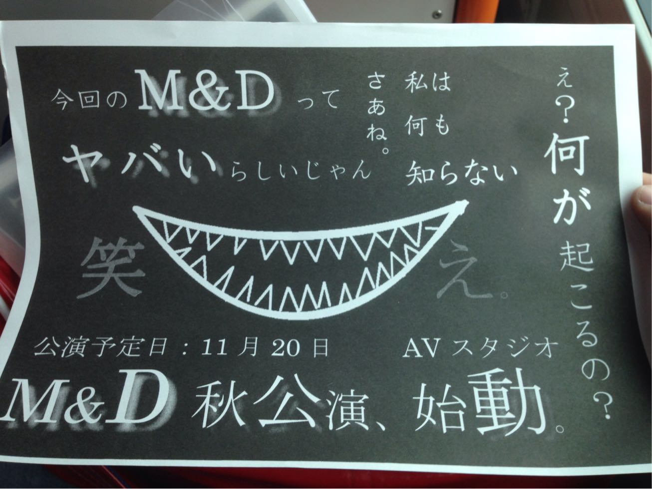 公式ホームページhttp://mandd.okoshi-yasu.com皆様のご来場お待ちしております!質問等はmandd.kanasoh@gmail.comまでお願いします!